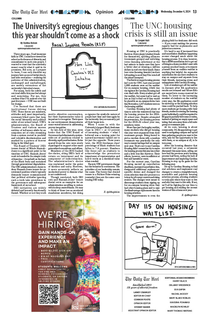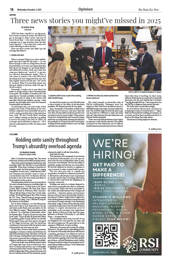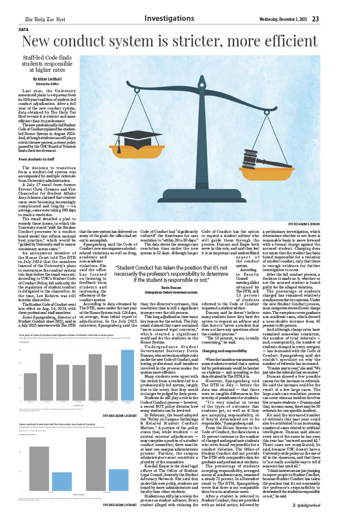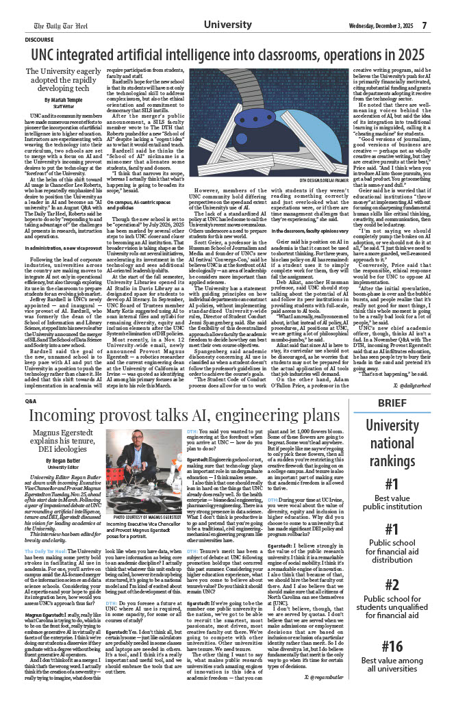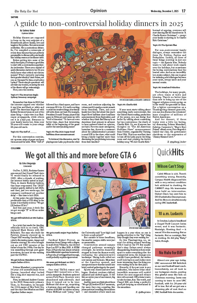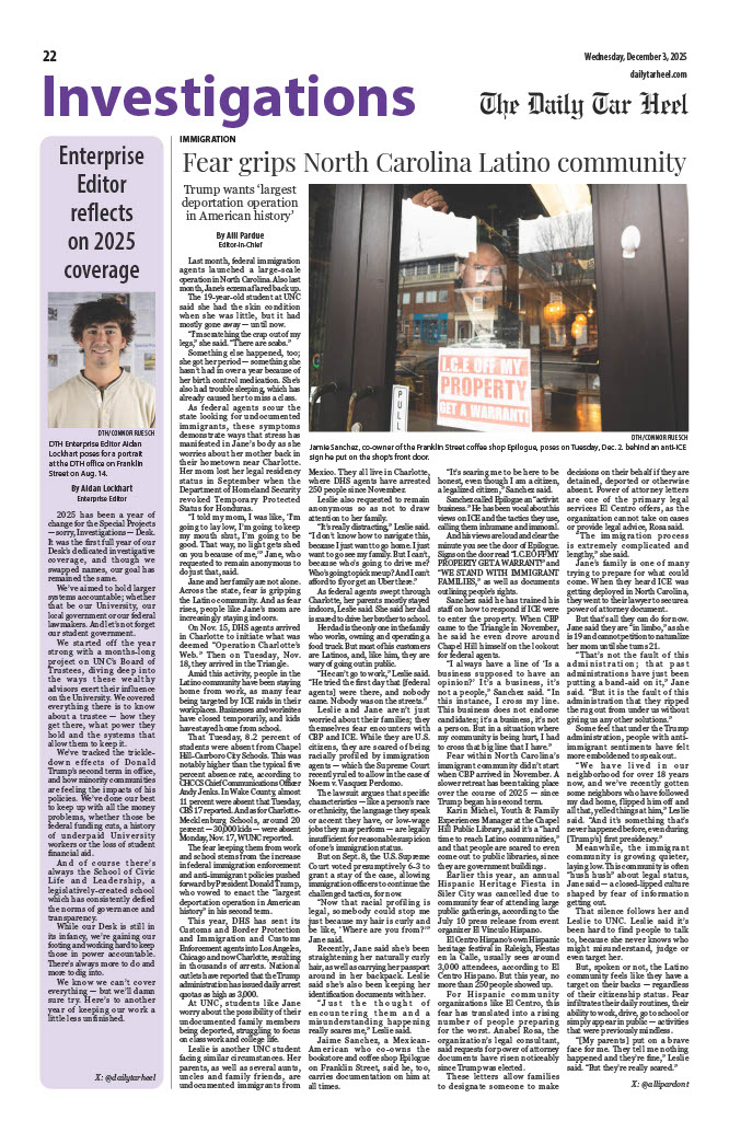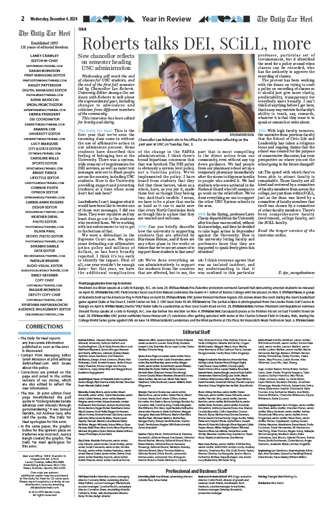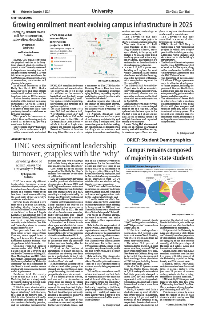 “2025 was a year of fragmentation and divide. And when things shift at the state, federal or global level, it all trickles down. UNC does not reside in a vacuum — and this year reminded us of that, again and again. But with every controversy came students standing tall for what they believe in.”