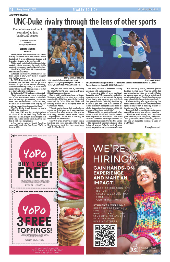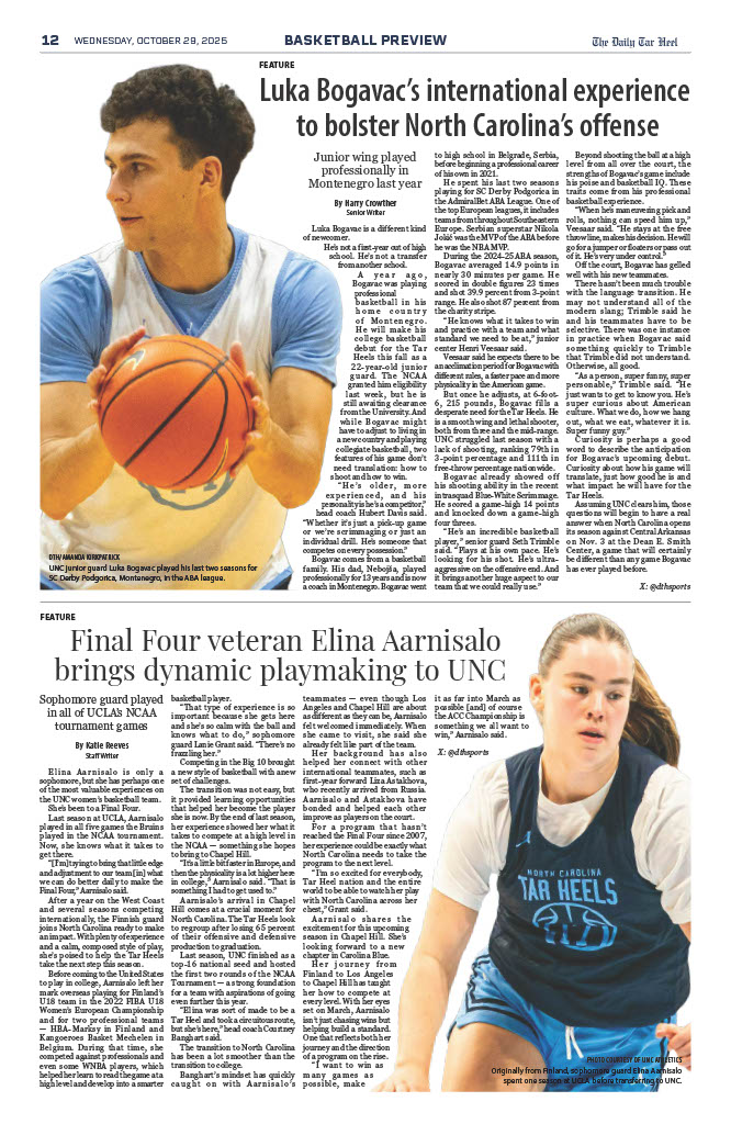 Below are two of my published online articles for The Daily Tar Heel, each reflecting my commitment to clear, engaging reporting and thoughtful digital storytelling. These pieces highlight my experience writing for a fast-paced newsroom, collaborating closely with editors, and crafting stories that connect with readers across platforms.